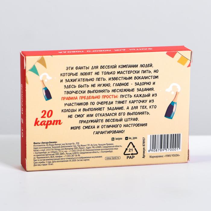 Купить игра для компании "фанты звезда бокала" 20 карт от 120 руб. с доставкой до пункта выдачи в Сосенском. Интернет магазин ДекаМаркет. Оплата при получении.